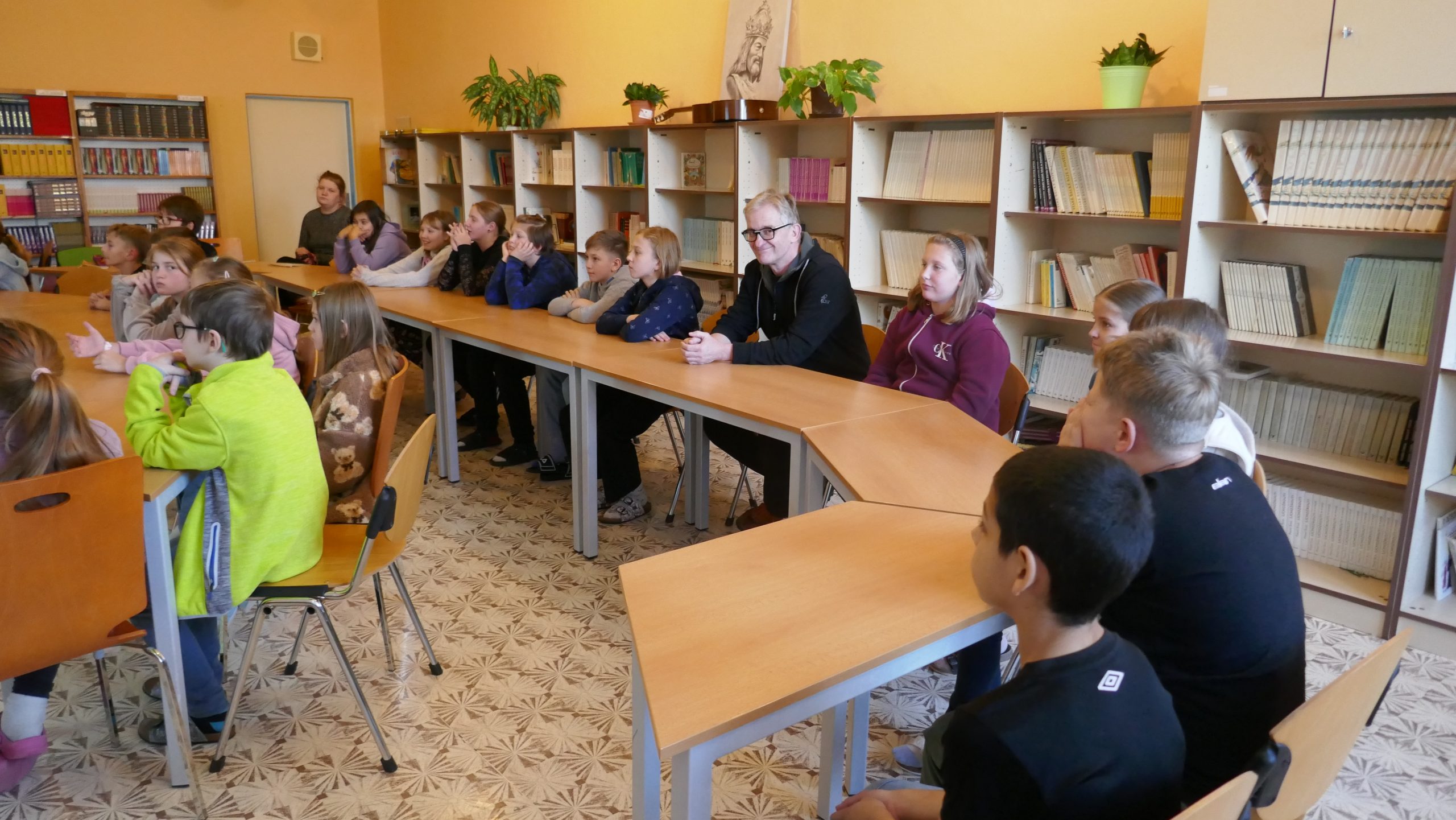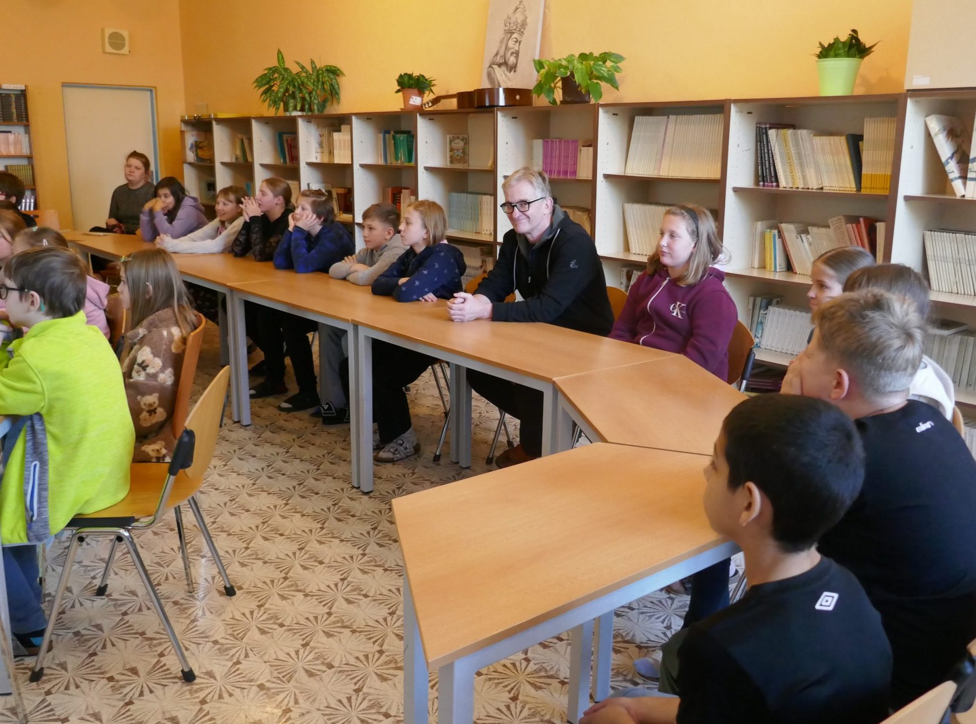 Následně žáci se svými třídními učiteli nebo vyučujícími českého jazyka spolupracovali a diskutovali ve svých učebnách nad pracovními listy souvisejícími s tématem besedy. Pro nejmenší byly připravené i omalovánky právě s ilustracemi z autorových knih.