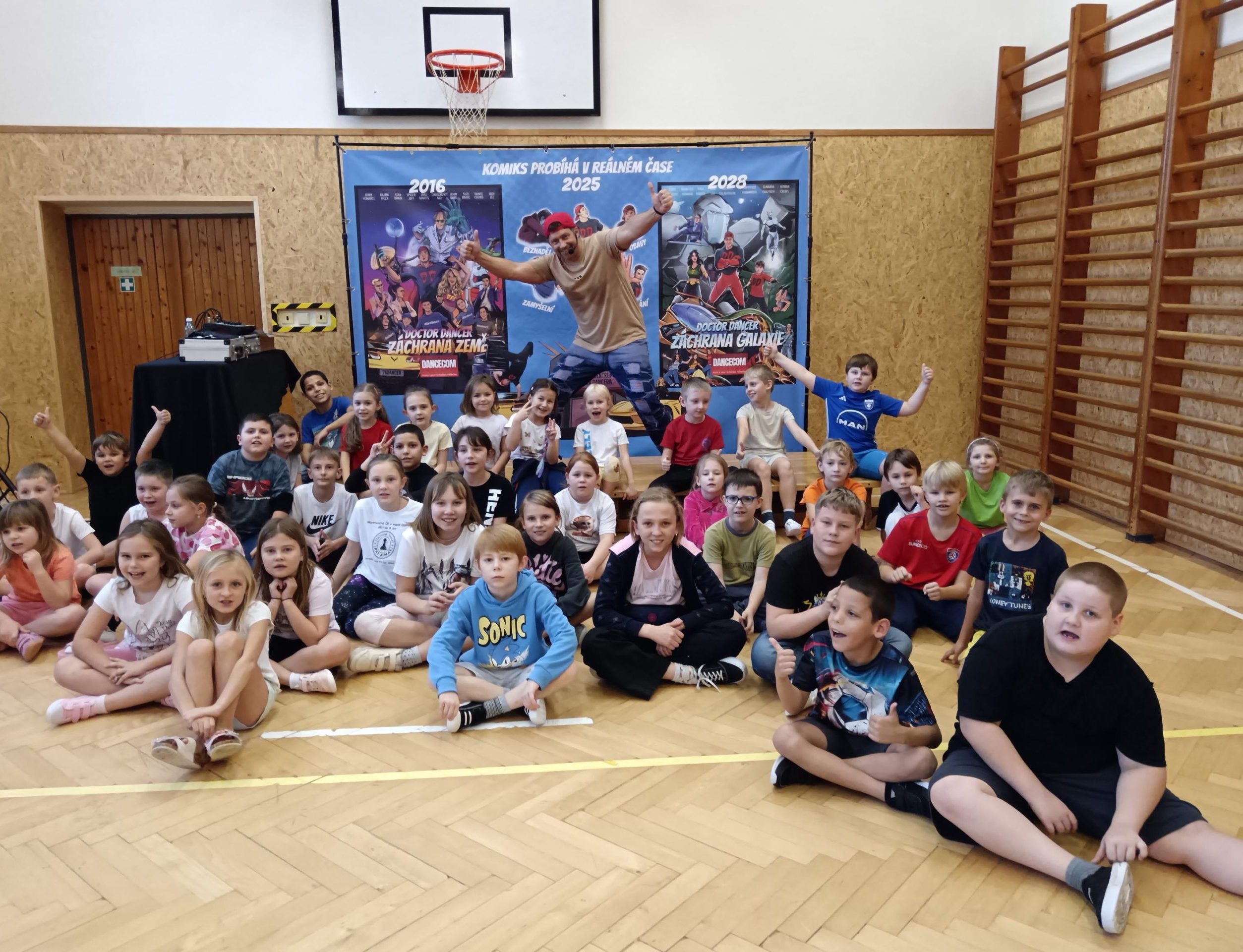 Jeho mise byla jasná: zachránit galaxii tancem, smíchem a pořádnou dávkou pohybu. A protože žádný superhrdina nezvládne všechno sám, povolal si na pomoc nás – družinové posádky z řad odvážných žáků.